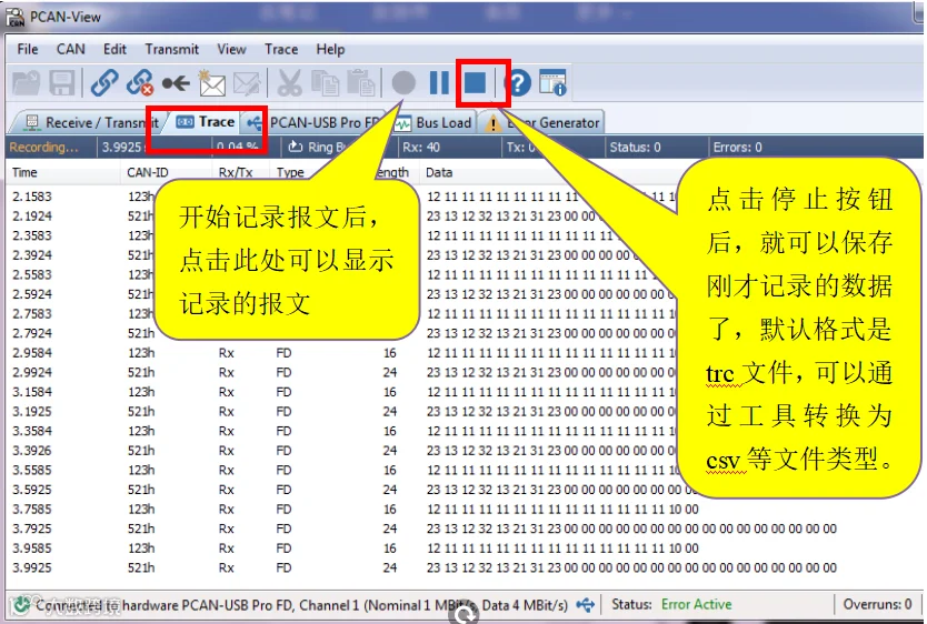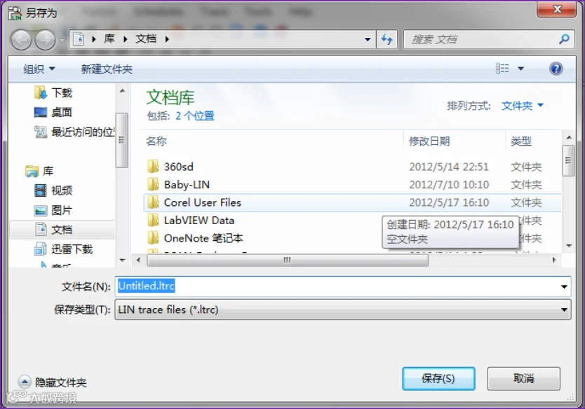 中的红色的开始Trace按钮就可以开始记录接收到的LIN报文。点击开始后首先会弹出一个文件保存路径选择窗口: