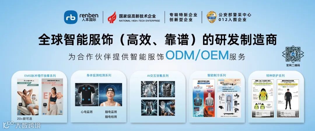 大会以“主会场+多场景展示”的创新架构,集中发布了场景机会与能力清单,展示了包括智能制造、低空应用、智慧城区等多个前沿领域的创新成果。人本国际在大会现场展示了EMS科技塑形及理疗按摩系列、心电监测系列、智能制冷系列、应急救援系列、骑行装备系列等核心产品。智能服饰体验区始终人流如织,参观者通过亲身体验,深切感受到了智能科技为健康生活带来的革新。
