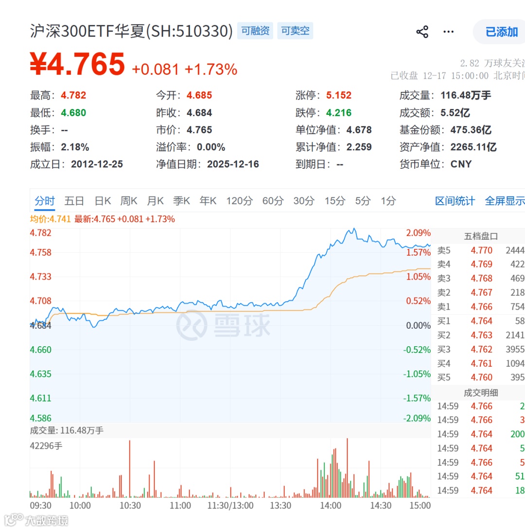今天下午,A500和沪深300ETF同时爆量,A500ETF合计成交额达525.75亿元