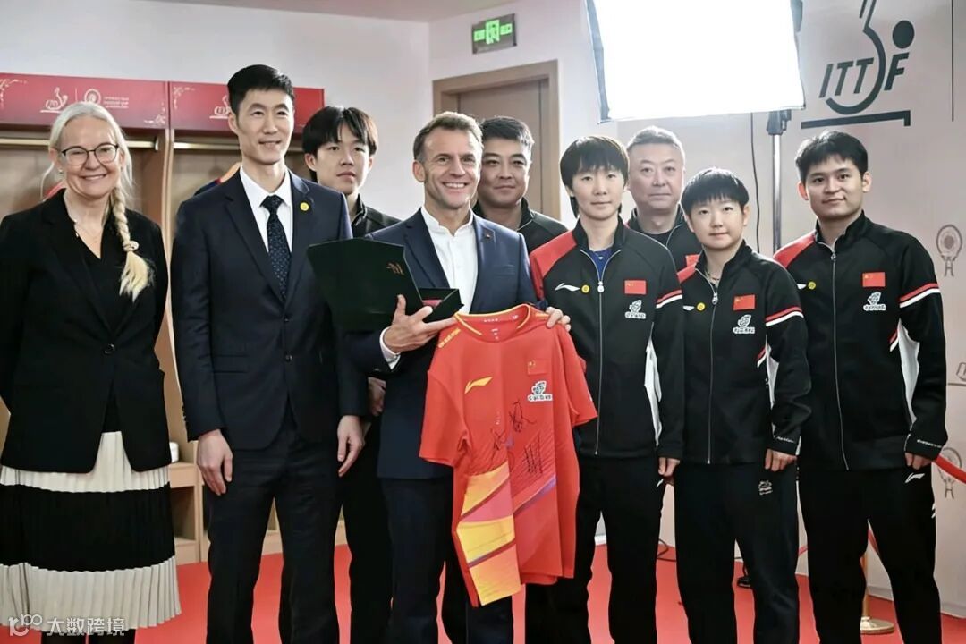 赛后,马克龙与中法队员共同合影,将两国队服叠举胸前,定格下文化交融的瞬间。孙颖莎在社交平台晒出合影,配文“友好的对手”,简单四字道出体育无国界的真谛;王楚钦则笑着回忆“元首打球很投入,体力相当不错”。而中国乒协主席王励勤那句“中法水平接近,互有胜负”的幽默回应,更让这场友谊赛的温情持续升温。