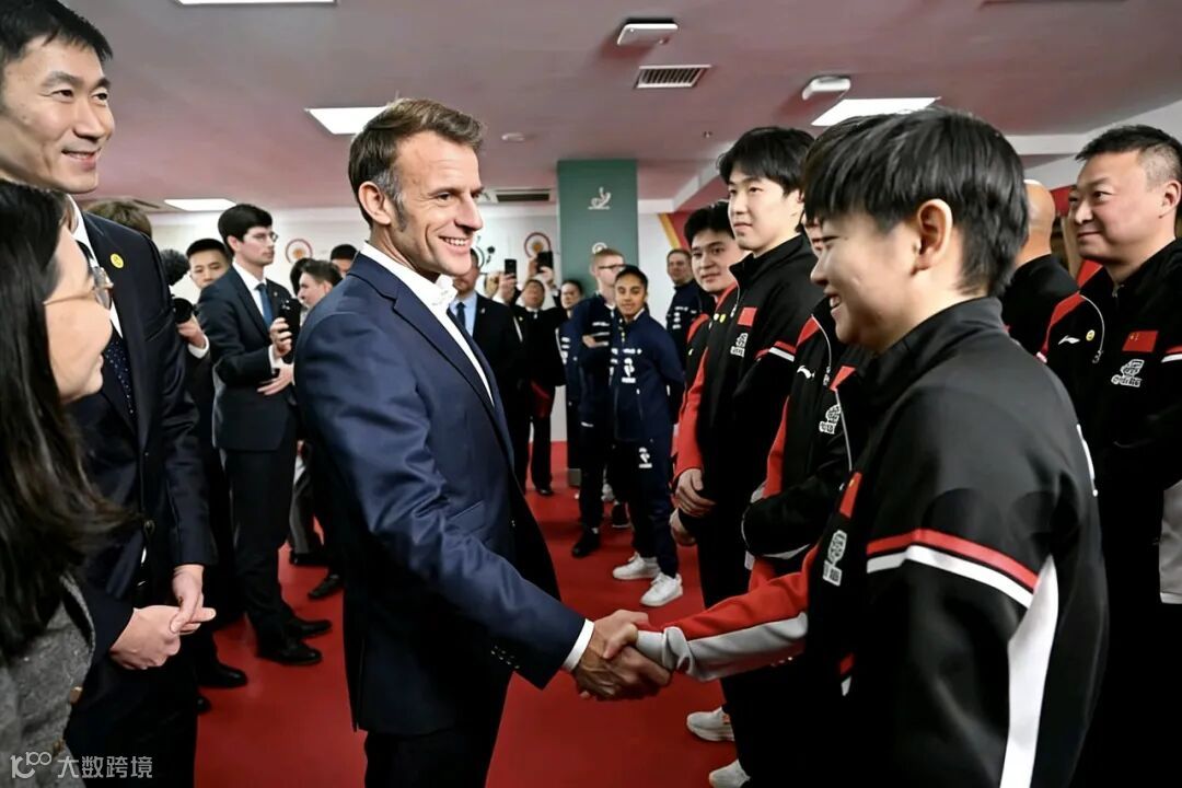 意犹未尽的马克龙随后再组男双,搭档法国新星菲利克斯·勒布伦对阵王楚钦、林诗栋。他对着勒布伦喊出“来吧,狠狠干一板”,看着小将的正手抽球,自己也跟着兴奋鼓掌,全然沉浸在乒乓运动的快乐中。这场前后持续三分半钟的互动,没有胜负之分,却让“这里的乒乓球气氛最厉害”成为马克龙由衷的感慨。