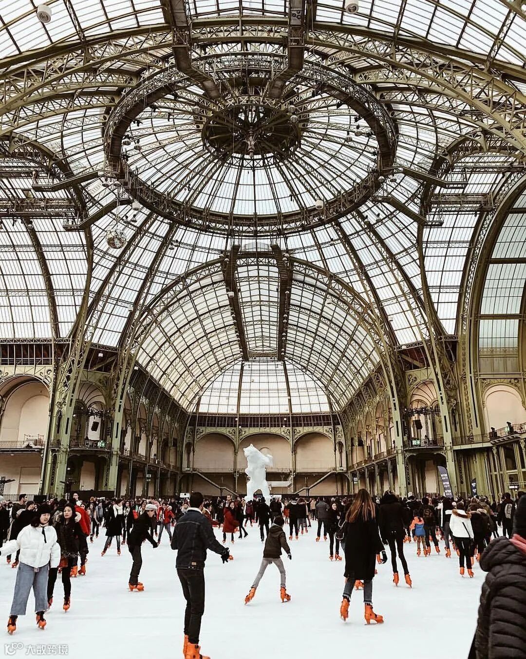 白天,大皇宫的玻璃穹顶将自然光洒满整个冰面,整个空间像被一层柔光笼罩,浪漫得仿佛置身电影场景。