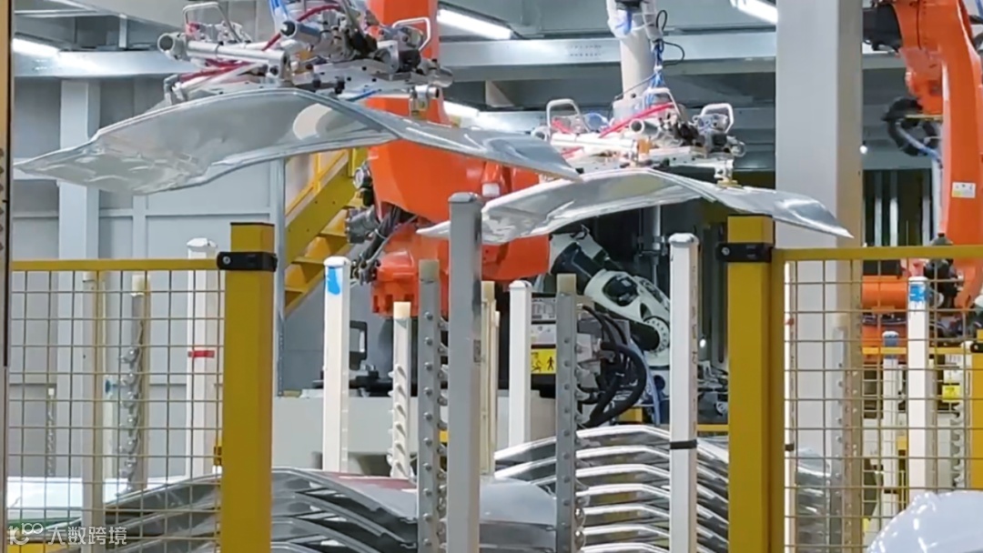 焊装机器人主要来自发那科,ABB为其打造全自动冲压产线,配备7台机器人及整套“交钥匙”系统,涵盖拆垛、上料、传送、收料等环节,实现100%自动化。