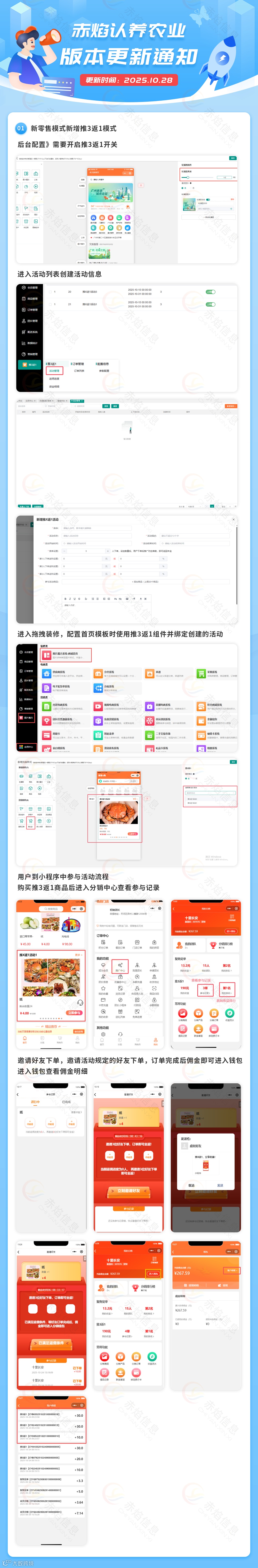 本次产品升级为客户带来多重核心价值:“推 3 返 1” 活动模式可助力商家低成本拉新促单,后台三步式配置(开开关、创活动、绑组件)能快速落地活动,用户购品后可清晰查记录、邀好友赚佣金,有效激发用户裂变传播意愿,提升商品销量。