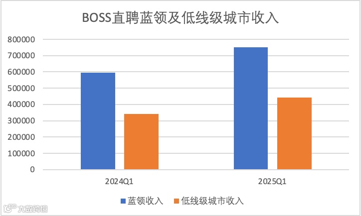 过去支撑BOSS直聘增长的,是常被舆论忽视的蓝领岗位领域。2025年第一季度,平台来自蓝领招聘的收入同比上升25%,成为拉动大盘的重要力量。
