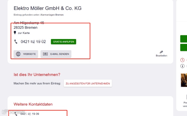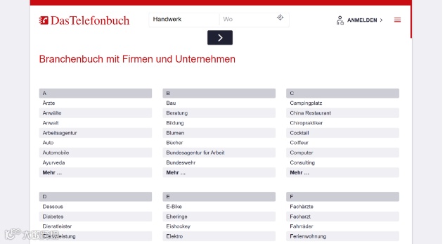 该平台是德国本地较具权威性的企业与个人信息名录网站,主要功能包括:
