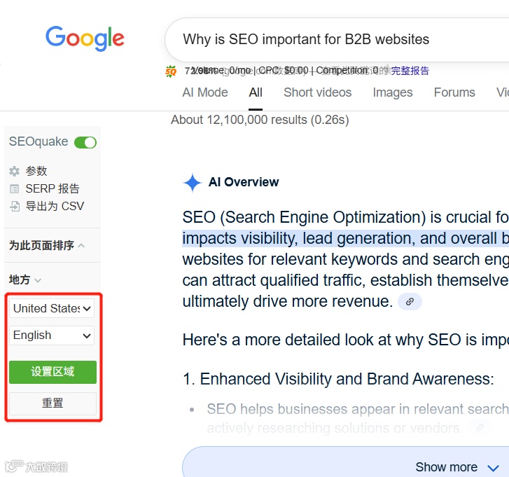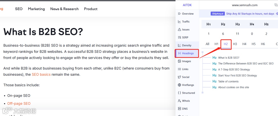 方法一:分析竞争对手H2 利用seoQuake等工具定位目标地区搜索结果,查看排名前十页面的H2结构,筛选高频出现的标题作为参考。配合AITDK插件可快速提取页面H2标签,提升分析效率。