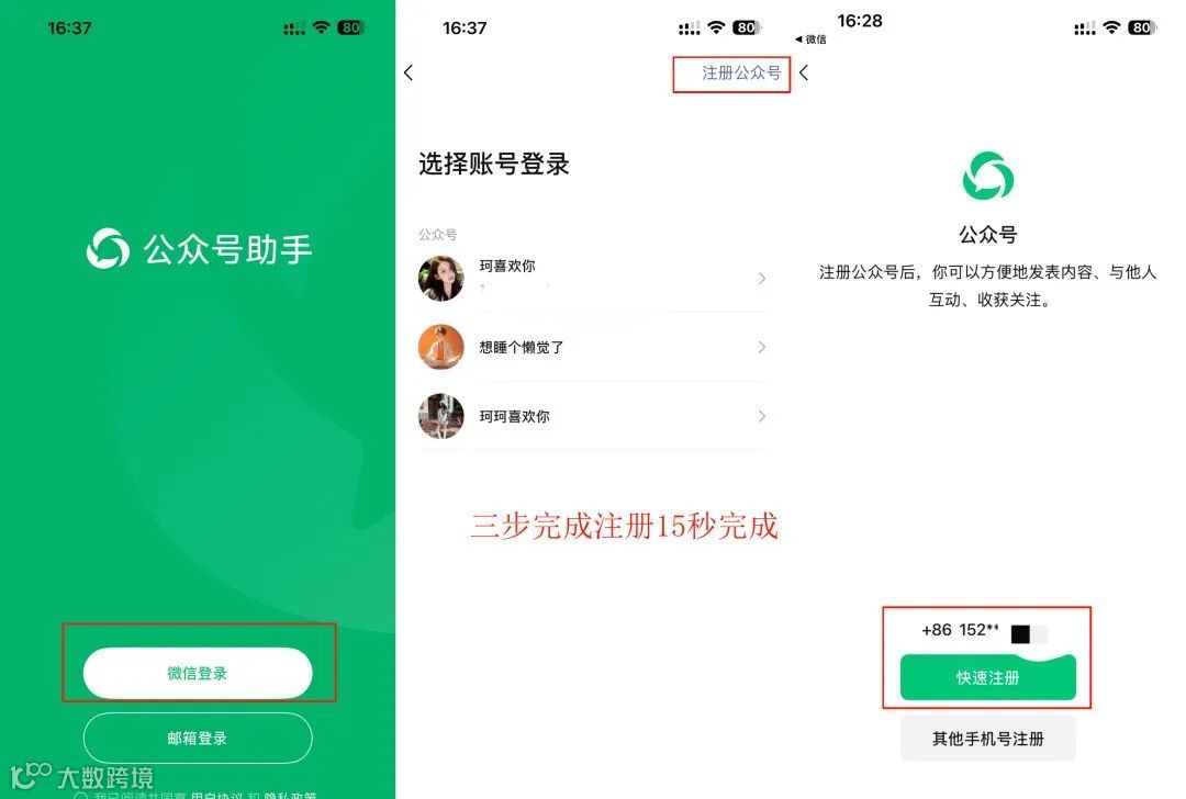 电脑、手机、微信内注册方法详解,最快1分钟开通公众号