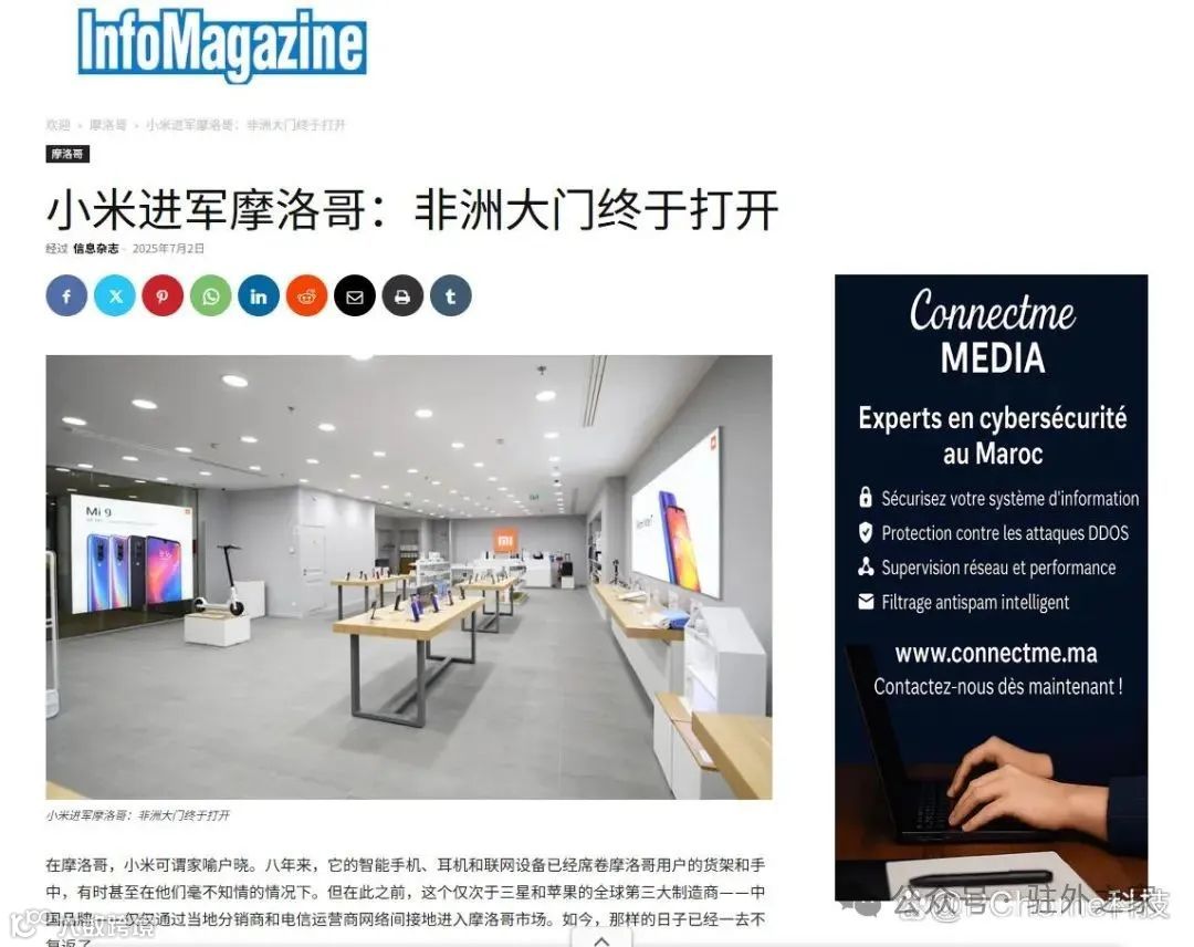 2025年7月,小米在摩洛哥正式成立XIAOMI Morocco本地子公司,并于8月15日开设非洲首家直营店,位于该国繁华地段。
