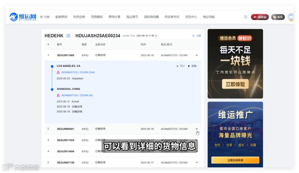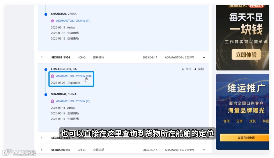如果订阅了此票货物,也可以直接在这里查询到货物所在船舶的定位: