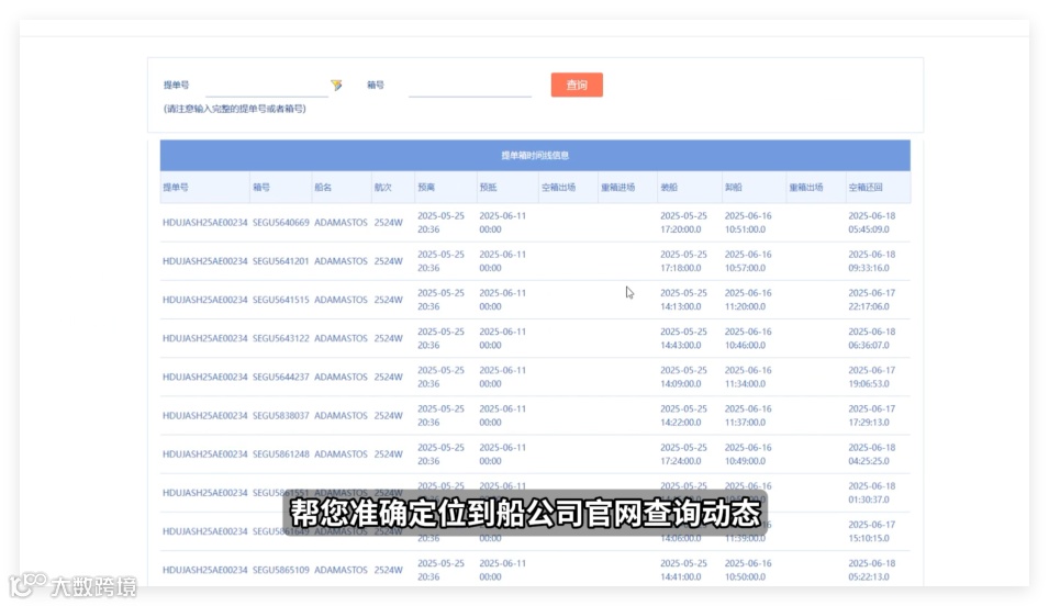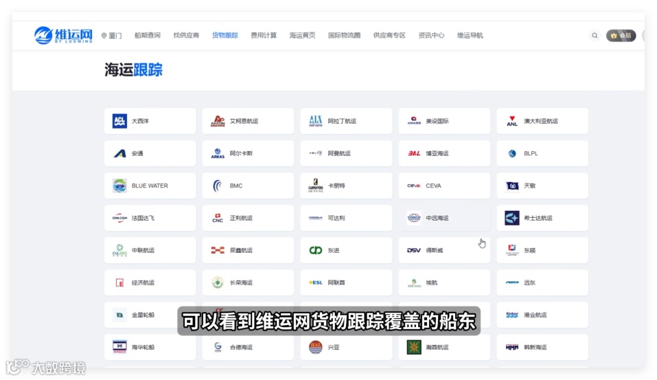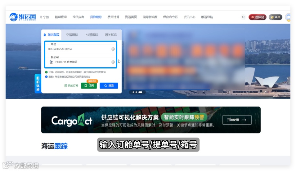 点击海运跟踪,输入订舱单号/提单号/箱号,自动匹配船公司: