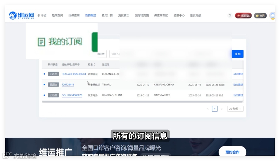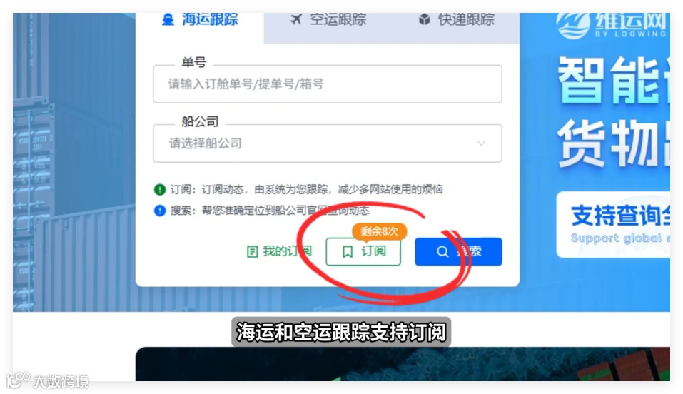 海运和空运跟踪支持订阅,和跳转船东/航司官网查询两种模式: