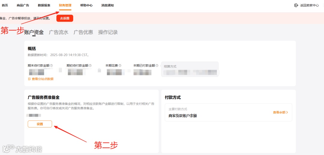该款项可退还,商家需先关闭所有正在进行的广告活动,随后在【财务管理】→【广告服务费准备金】中将金额设为0即可完成退还操作。