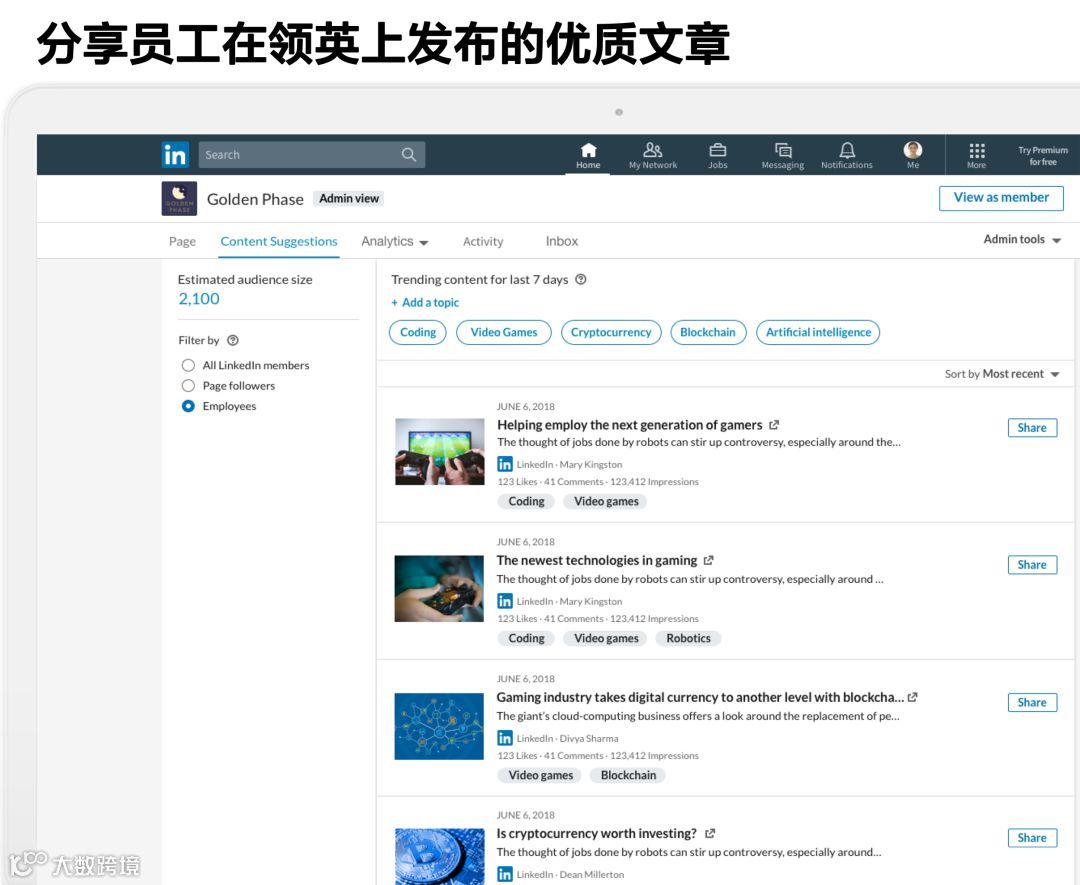 查看员工在领英上发布的所有优质文章