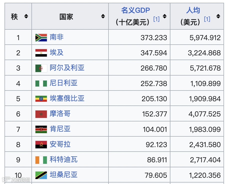 埃及2023年排名第一,在一系列货币贬值后,2024年国内生产总值将落后于南非跌至第二位,预测2027年将重新夺回冠军宝座。