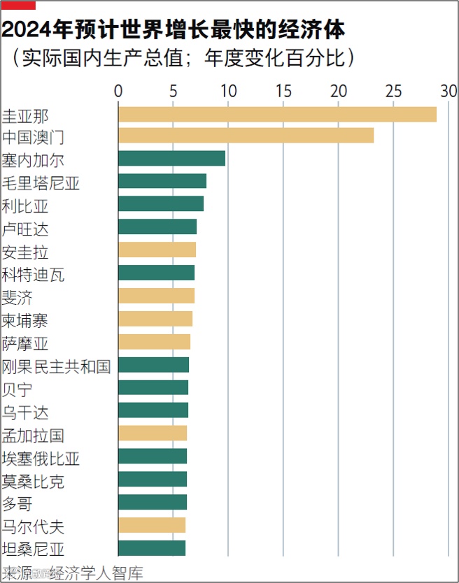 近期,国际货币基金组织对2024年非洲国家的国内生产总值进行了预估: