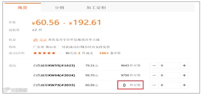 备注:如商品存在价格作弊情况(不合理价格),则不计入搜索展示价格范畴。1688网站将优先推荐商品价格、起批量及SKU设置较为合理的商品。对于以下异常情况,商品排名将在同等条件下相对靠后: