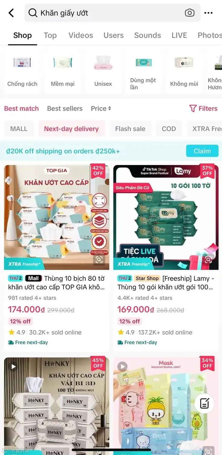 几乎同一时刻,胡志明市的公寓里,宝妈阮氏正对着空了半箱的纸尿裤发愁。当搜索页筛选出 “次日达” 选项,那些标着闪电标的商品瞬间驱散了她对 “断货危机” 的焦虑 —— 当晚下单,第二天午后,新纸尿裤就出现在了家门口。