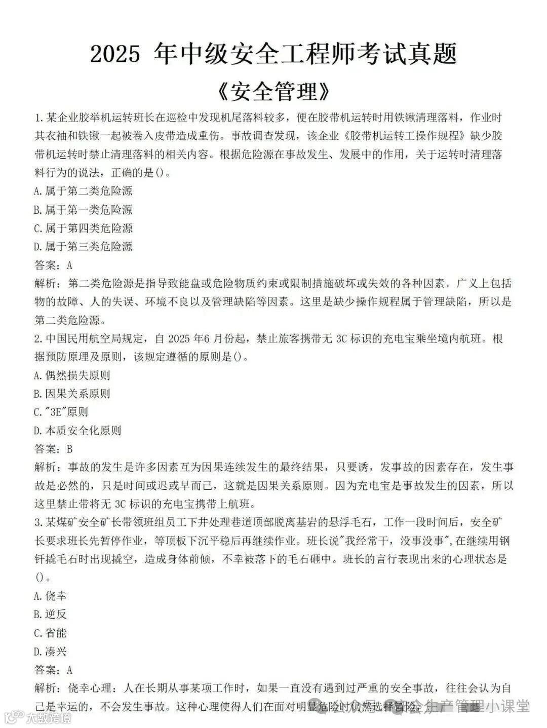 三、2025年注册安全工程师《管理 》真题及答案解析