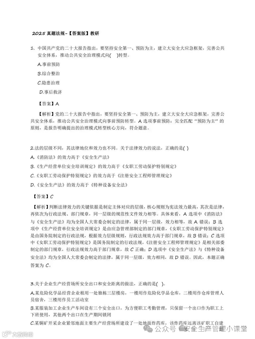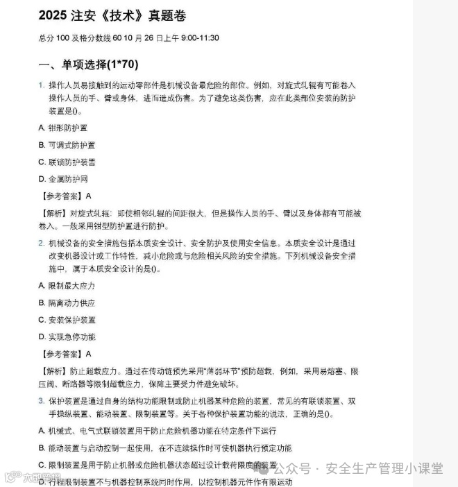 二、2025年注册安全工程师《法规 》真题及答案解析