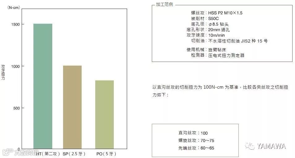 (3)攻牙作业条件(攻牙速度、使用的切削油、机械主轴的刚性等),都会影响攻牙扭力。