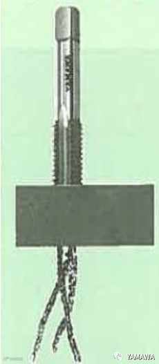 直沟丝攻,如左图丝攻的沟型为直沟型,切屑较细,一般攻牙时切屑会囤积在沟内,吃入部长度分为:第二攻 中(5牙)和第三攻上(1.5牙)。