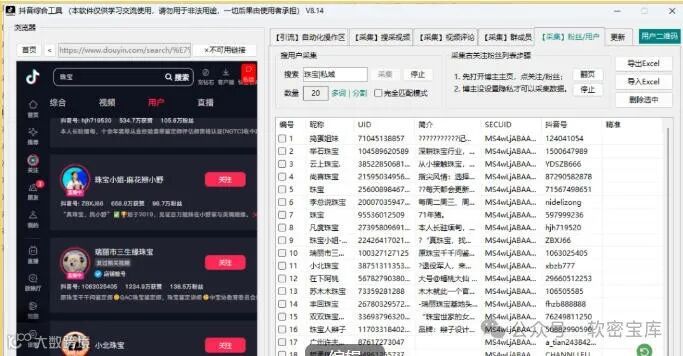 4、采集用户或粉丝。可通过关键词筛选出对应的用户,并私信或提取主播作品。