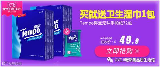品质爸爸懂生活!用纸只选Tempo得宝!100%原生木浆,遇水不破,精致羽毛印花,再挑剔的人都会对它一见钟情。选择得宝,选择品质!
