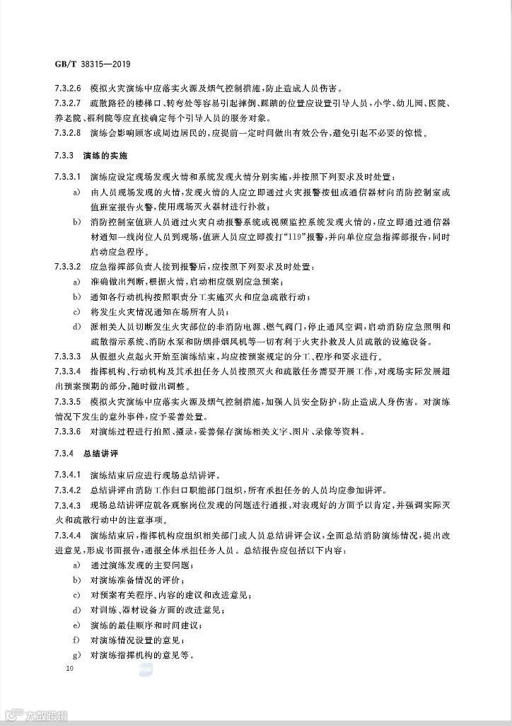 《社会单位灭火和应急疏散预案编制及实施导则》 GB/T 38315-2019 ,发布日期是2019-12-10 , 实施时间为2020-04-01。
