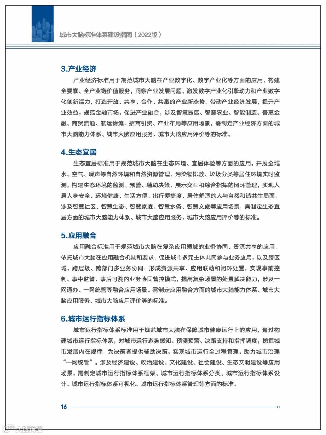 2、《指南》是我国城市大脑标准化工作的总体性、体系性规划,既可以为当前和未来一段时间内的城市大脑标准体系建设工作提供指导,也可以促进标准在支撑各地城市大脑项目建设、技术创新、产业发展等方面发挥实效。