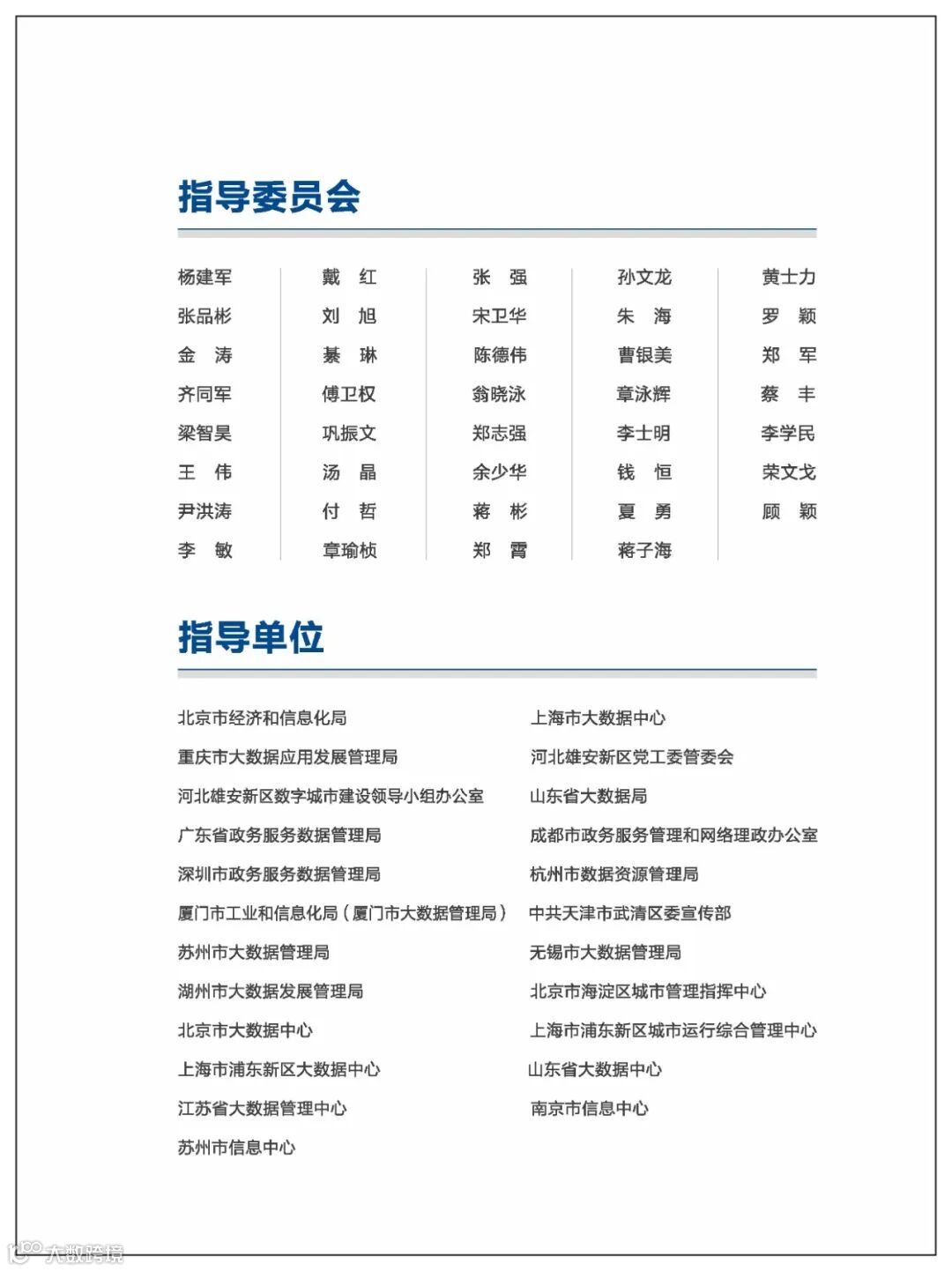 6、参编单位:中国电子技术标准化研究院、上海数字产业发展有限公司、山东浪潮新基建科技有限公司、云赛智联股份有限公司、国网上海市电力公司浦东供电公司、中移雄安信息通信科技有限公司、成都秦川物联网科技股份有限公司、青岛海信网络科技股份有限公司、山西远大纵横信息技术工程有限公司、华信咨询设计研究院有限公司、北京百度网讯科技有限公司、上海依图网络科技有限公司、杭州数梦工场科技有限公司、上海商汤智能科技有限公司、中国联通智能城市研究院、华为技术有限公司、湖北省标准化与质量研究院、广州广电运通金融电子股份有限公司、太极智慧城市运营服务(天津)有限公司、中国电子学会、中电莱斯信息系统有限公司、中关村科学城城市大脑股份有限公司、软通智慧科技有限公司、华迪计算机集团有限公司、天津智慧城市研究院、泰瑞数创科技(北京)股份有限公司、深圳市矽赫科技有限公司、北京五一视界数字挛生科技股份有限公司、北京航空航天大学、中电科普天科技股份有限公司、腾讯云计算(北京)有限责任公司中睿信数字技术有限公司、成都市标准化研究院、山东省标准化研究院、建设综合勘察研究设计院有限公司北京东方金信科技股份有限公司、北京电信规划设计院有限公司、国泰新点软件股份有限公司、山东新一代标准化研究院有限公司、北京清华同衡规划设计研究院有限公司、新华三技术有限公司、山东省齐鲁大数据研究院、国家信息中心、福建省大数据有限公司、思必驰科技股份有限公司。
