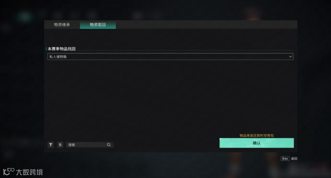 若您在转赛季前处于PVE 剧本 中,如果忘记某些物品存放在哪个好友领地中或者在转赛季时忘记取回物品导致丢失问题,您可以通过【背包】-【物资继承】-【物资取回】放置到自己的保险库或者时空背包。