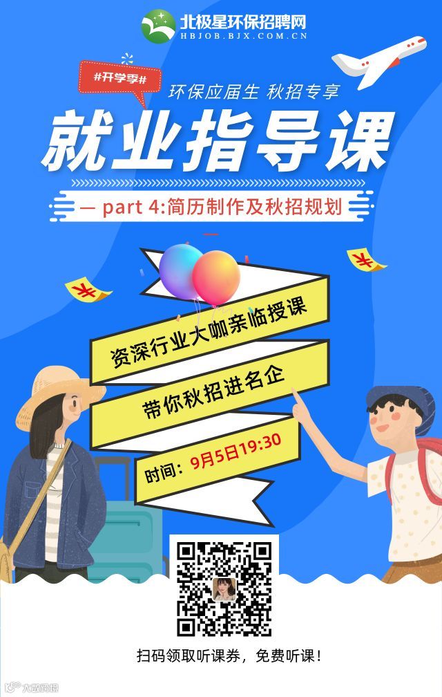 北极星招聘为帮助环境专业应届生更明确就业方向,北极星环保招聘网特为大家推出“20届就业指导精讲课”!现在报名即可免费听课!