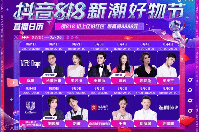 据介绍,本次818新潮好物节,抖音电商还将引入更多外部流量和认知,联合电视台端打造抖音电商定制晚会,完成一次对抖音电商用户的破圈,让抖音818新潮好物节所能覆盖的市场向外围扩展。