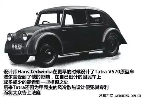 在设计国民车的思路上,无论是波尔舍还是希特勒本人都不可避免地受到了当时一些设计师的影响,比如Tatra品牌的设计师Hans Ledwinka,他设计了Tatra V570原型车,无论在造型还是布局上看起来与保时捷公司的Type 32都非常相似,而且在风冷发动机的散热技术方面,Tatra持有多项专利,Tatra也因此在之后的日子里与大众对薄公堂。另一位设计师则是Josef Ganz,据说希特勒就是在1933年的车展上看到了他的设计之后萌生了国民车的想法。