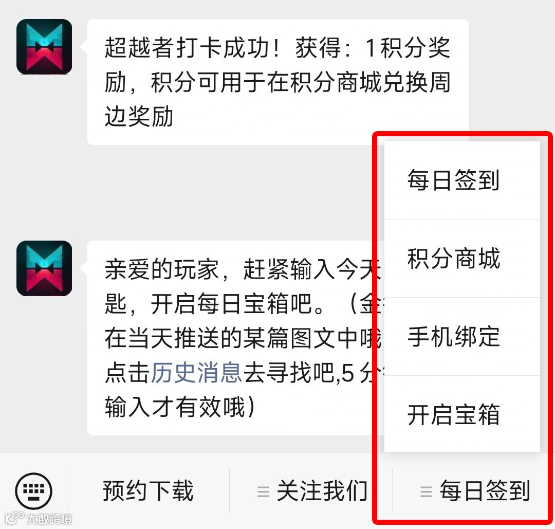 前往公众号后台绑定手机号,同时,每日参与每日签到、开启宝箱,即可获得积分!累积积分可以前往积分商城兑换周边等好礼噢!