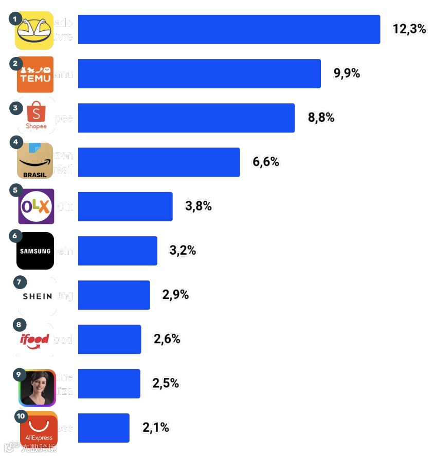 Temu 巴西电商市场跃居第二,强势挑战 Mercado Libre 领先地位