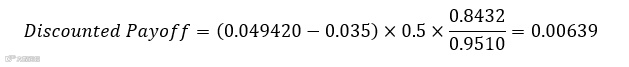 为了展示利率类衍生品的对手方信用风险敞口的计算,我们继续使用上一篇文章中计算的利率互换,其固定端支付的利率为3.5%,根据之前计算的结果,浮动端和折现时利率的取值如下表所示: