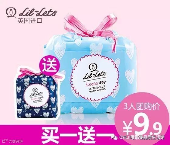 现在购买丽尔莱思Lil-Lets英国进口卫生巾14片,3人团购价仅需9.9元,还有机会获得丽尔莱思超棉夜用款10片装一包。