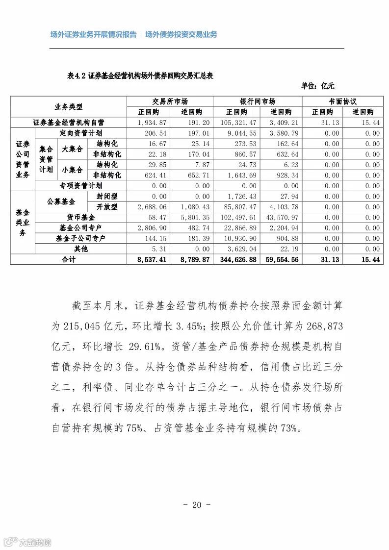 柜台市场业务:2020年3月,证券公司柜台市场投资者新开立账户54.36万个;实现产品转让1,505笔,转让金额20.64亿亿元。