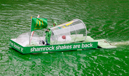 用来推销三叶草绿色奶昔的奇特小船,在三月期间庆祝圣帕特里克节。
