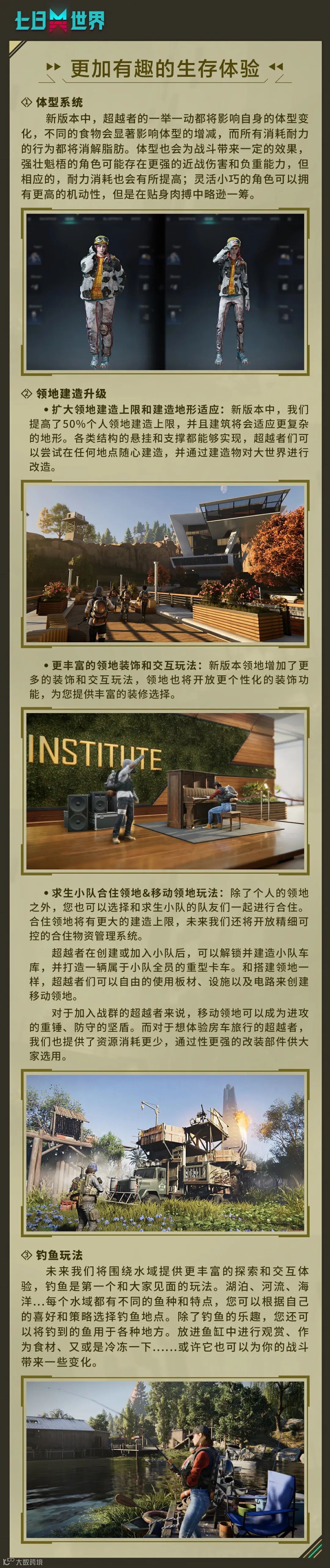 更细腻的美术效果、全新的剧情动画、更真实的体型和建造系统、生存小队移动领地、可被收容饲养的异常物、带你自由滑翔的威、全面更新的赛季玩法.......