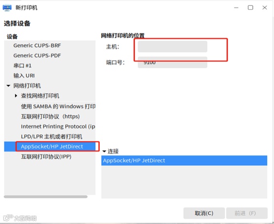 可以用AppSocket/HP JetDirect协议进行搜索添加网络打印机。