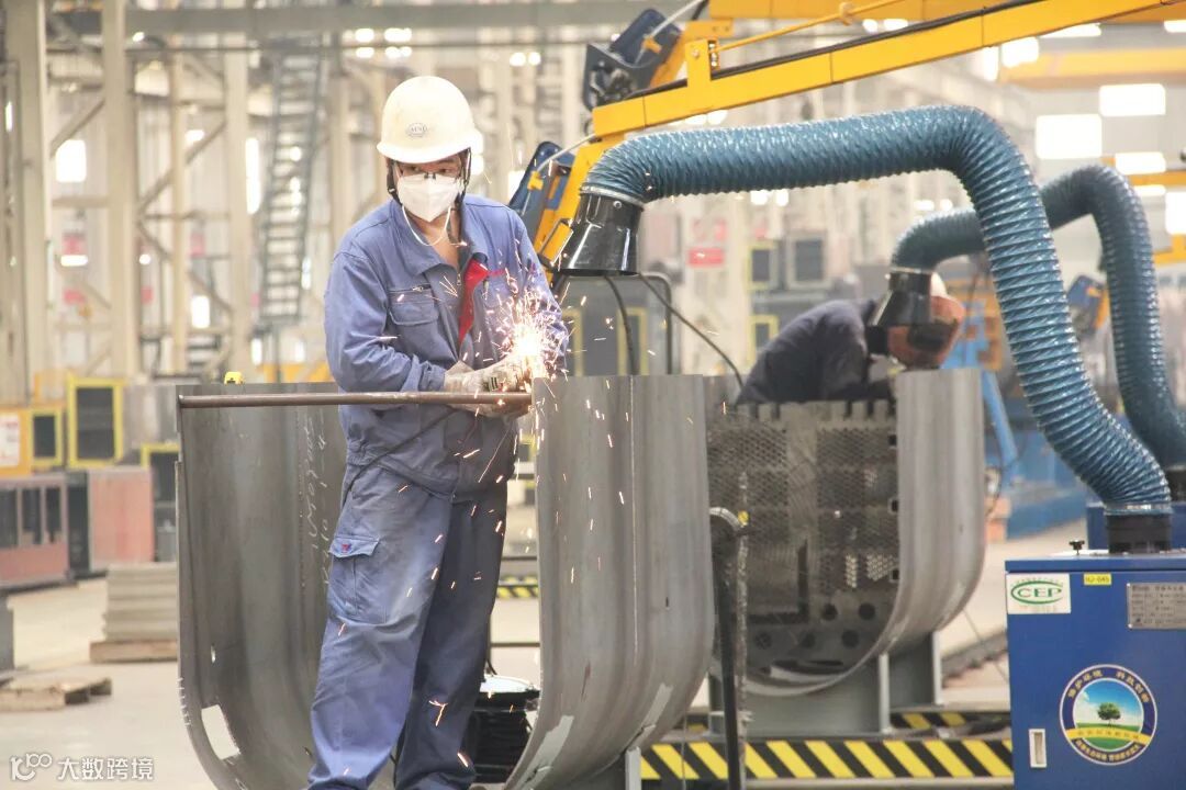 讲解过后小编们走进生产车间内部。车间内顶高廊深,占地广阔,机器体积大运作频繁,且要保持通风对流。夏季炎热空气对流导致工厂内温度也偏高,作业人员均整齐穿戴安全帽、防护服。生产经理告诉我们“为防工人们中暑,夏季作业实行‘三班倒’,且每天提供绿豆水、冷饮等,在保障安全生产的情况下,确保作业人员身体健康。”