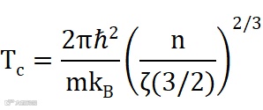 理想情况下所有粒子都聚集到基态,这时基态粒子密度为n=N/V ,因此临界温度Tc为
