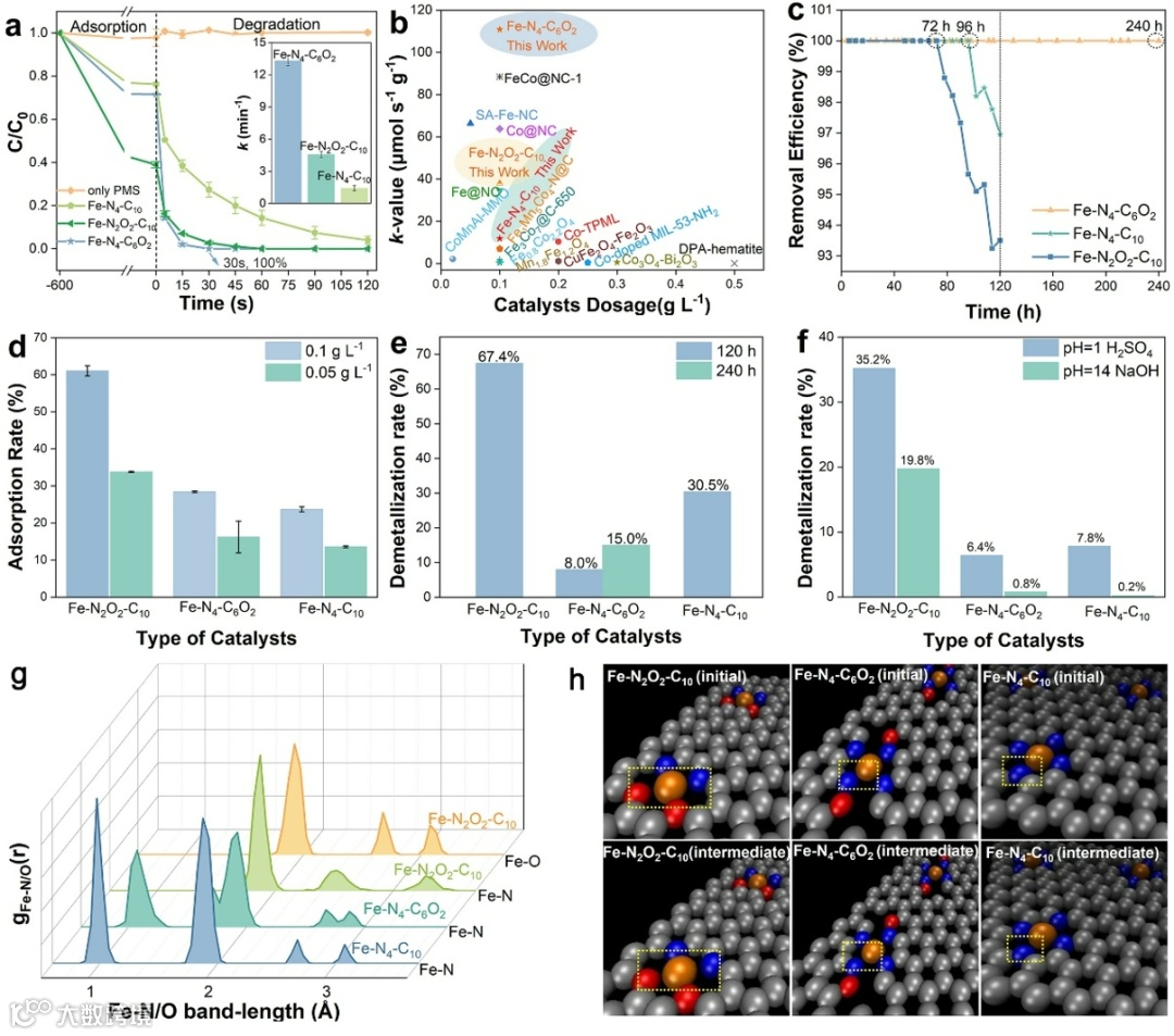 图5. Fe-SACs/PMS体系的机理探究:活性物种鉴定与FeIV=O电子结构模拟。