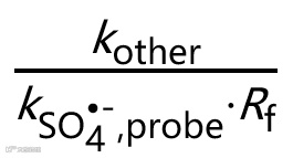 一般认为,NOM通过清除SO4•−来抑制污染物的降解。因此,准确测定溶液中SO4•−的稳态浓度([SO4•−]ss)是定量评估NOM清除自由基作用的关键。由于自由基寿命短、浓度低,常规分析技术很难直接量化它们。探针法因其特异性反应,常用于定量[SO4•−]ss。该方法基于探针化合物选择性地与SO4•−反应,监测探针的降解,进而利用实验测得的表观降解速率常数(kobs,probe)与已知的探针与SO4•−二级反应速率常数的比值,计算出[SO4•−]ss(式1)。从理论上讲, [SO4•−]ss等于SO4•−的生成速率(Rf)与其消耗的速率常数的比值。SO4•−的消耗源于其与污染物和水中各种有机、无机组分的反应(这些反应的表观速率常数合并为kother,式2)。因此,探针的加入必定会对反应系统产生扰动,导致测量误差。为了尽可能减少探针的影响,加入的探针浓度必须控制在很低水平,但低浓度探针的使用会带来分析上的难度。此外,NOM或共存污染物可能干扰探针的降解,影响[SO4•−]ss的准确性。