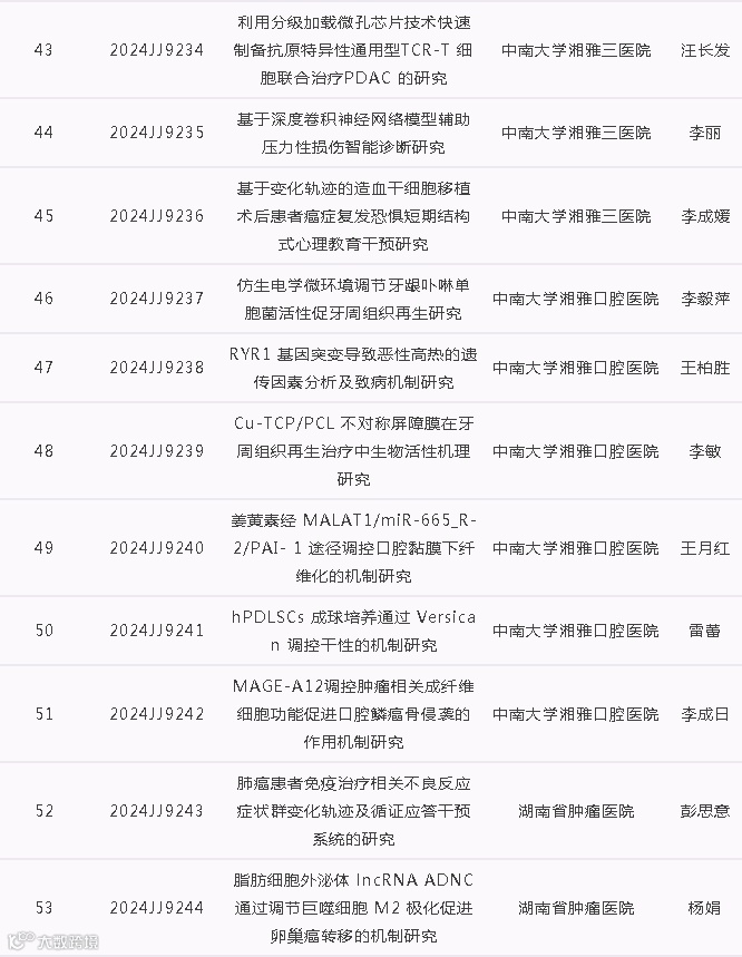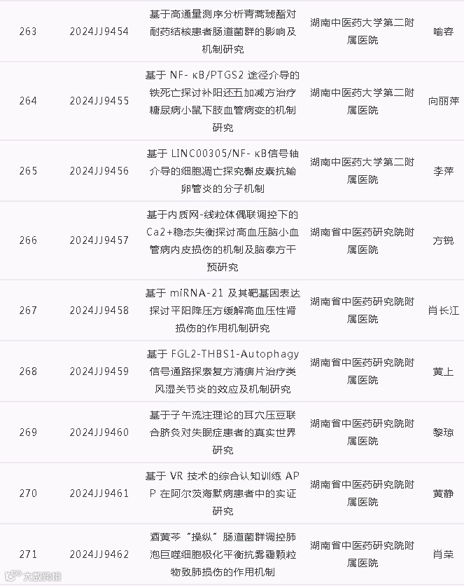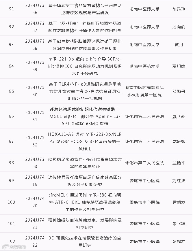 湖北省科技厅关于2024年度湖北省自然科学基金拟立项项目清单的公示