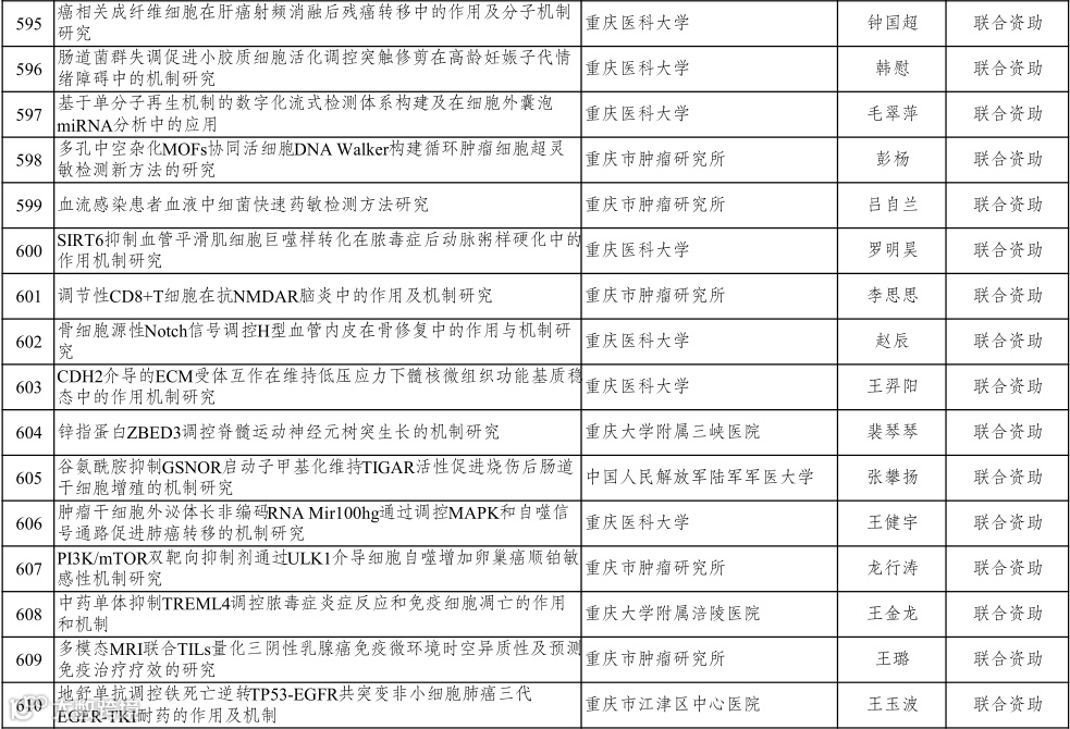 2024年度重庆市自然科学基金专项拟立项清单公示