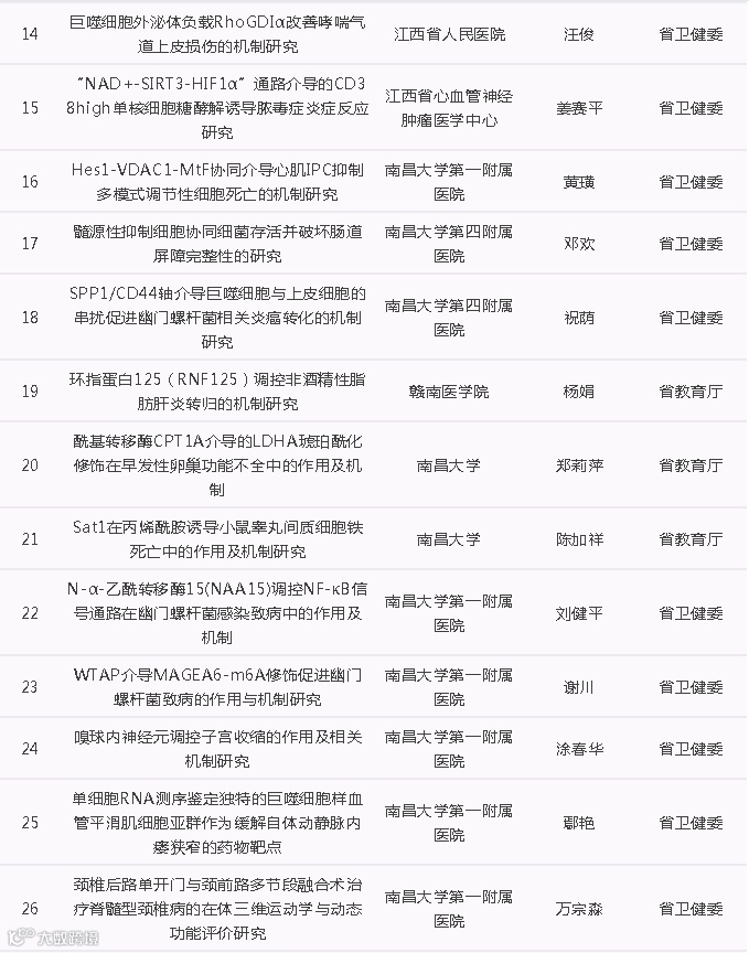 2024年度江西省自然科学基金重大项目、创新研究群体、重点、杰出青年基金、优秀青年基金、青年直接支持项目拟立项项目公示
